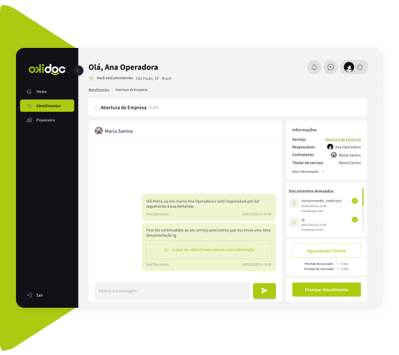 Transparência e segurança são fundamentais. Todas as suas interações com os clientes são cuidadosamente registradas e armazenadas em nossa plataforma. Isso significa que você terá um histórico completo e organizado de cada serviço prestado, desde a primeira interação até a conclusão. Com informações detalhadas à sua disposição, você poderá focar no que realmente importa: oferecer um atendimento de excelência e conquistar a satisfação dos seus clientes. Junte-se à Okidoc e aproveite a tranquilidade de trabalhar com total respaldo e controle de suas interações.